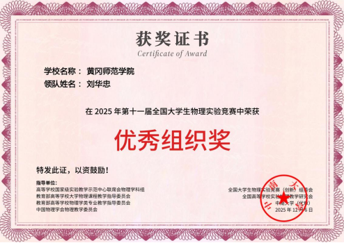 2025年11月21-23日,第十一届全国大学生物理实验竞赛(创新)决赛在中南大学落下帷幕。我校推荐的4支参赛队斩获全国二等奖1项、三等奖1项、优秀奖2项,学校获得优秀组织奖。